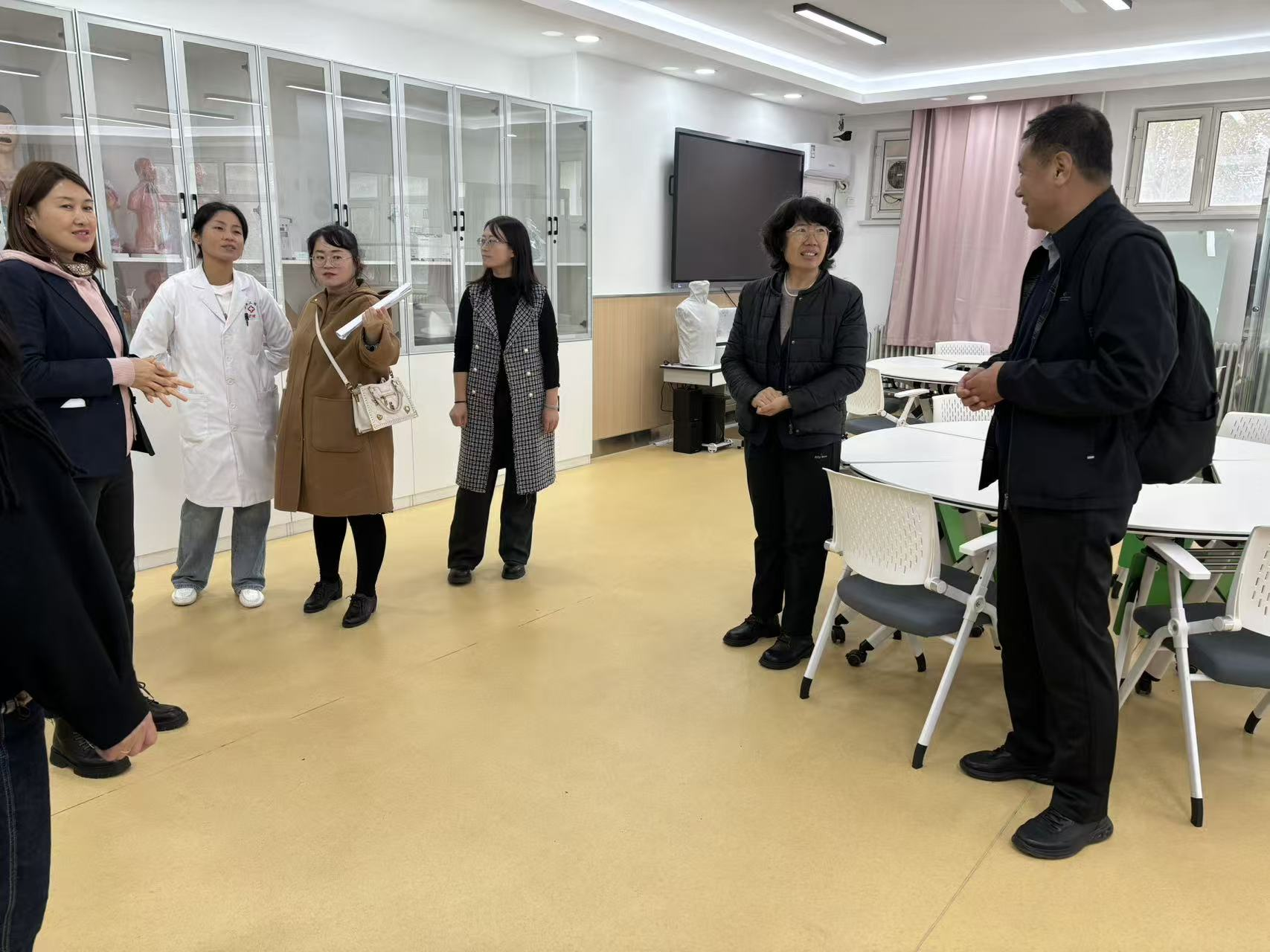 随后,参观团队移步至护理专业实训室,实地考察我院护理专业实践教学条件。护理教研室李丽娜老师从基础护理操作所需的模拟病床、护理模型,到贴近临床场景的急救训练设备等,均进行了细致讲解。赵院长一行在参观过程中不时驻足交流,对实训室的规范化建设、设备的实用性及我院在实践教学上的投入表示认可。