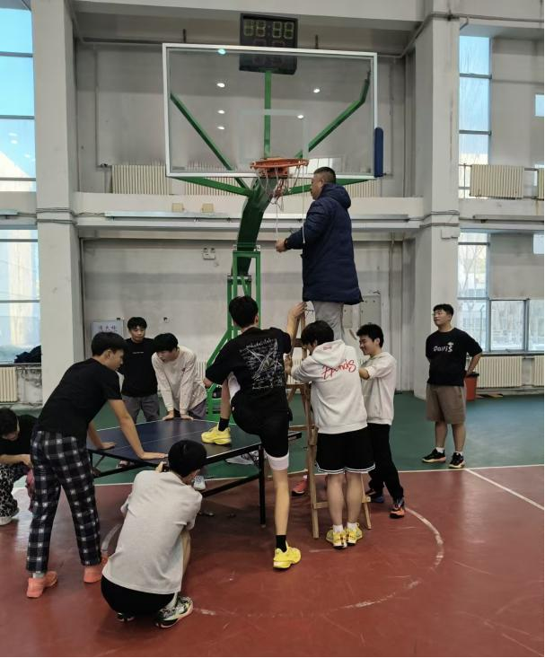 机械工程系党支部开展主题党日活动 —— 党员干部带头修复体育馆篮球架