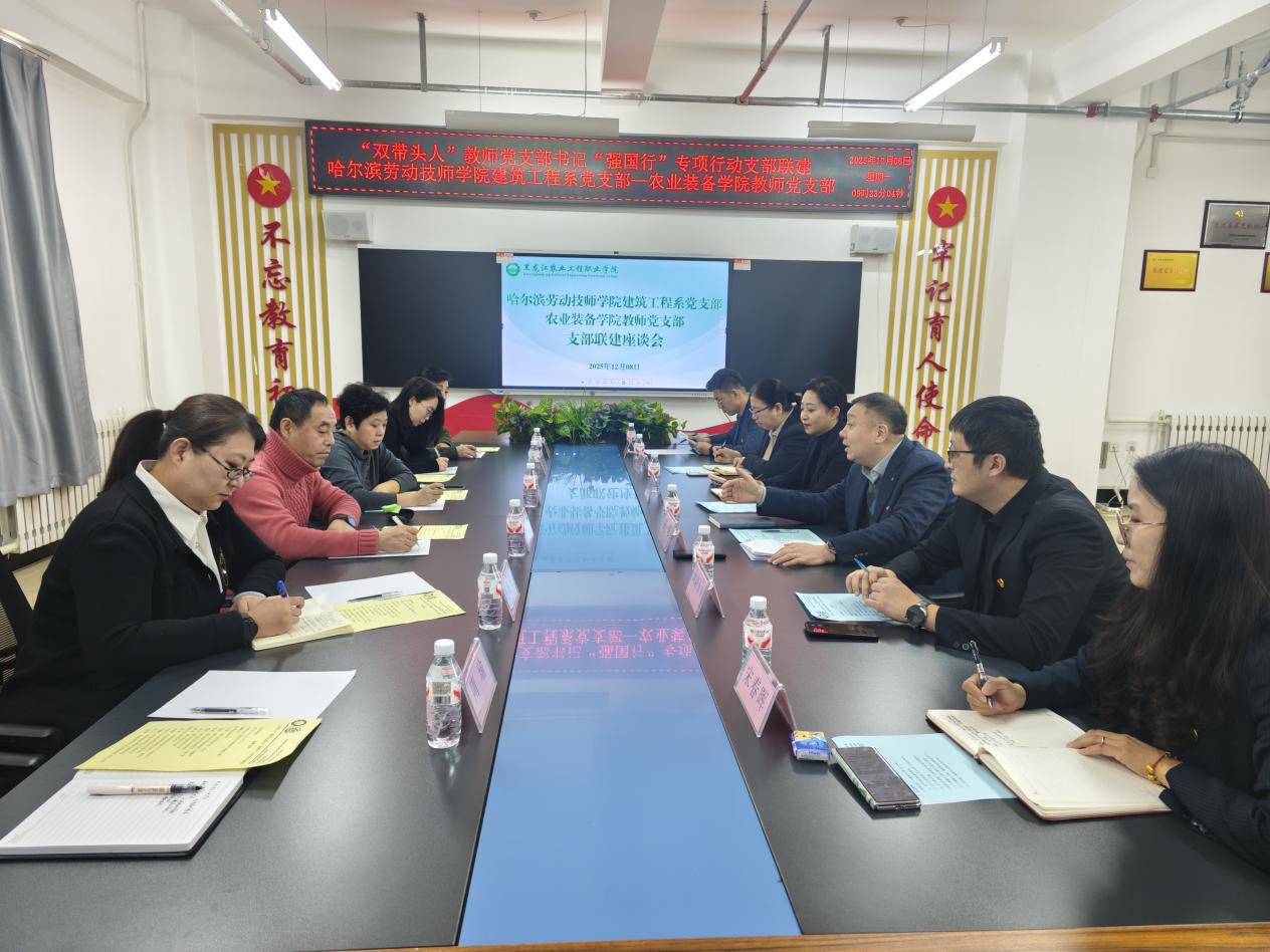 为落实立德树人根本任务,引导广大师生在以中国式现代化全面推进强国建设、民族复兴伟业新征程上砥砺新担当、展现新作为,发挥好教育对科技和人才的支撑作用,把科教资源优势转化为区域振兴发展优势,我院建筑工程系与黑龙江农业工程职业学院农业装备学院教师党支部对接,精准围绕支部共建、教育服务、科技赋能、实践育人等方面开展支部交流活动。黑龙江农业工程职业学院农业装备学院党总支书记、行政负责人霍峰,教师党支部书记、副院长孙雪梅等同志接待了由建筑工程系党支部书记付乃孝同志带队的党支部代表一行。
