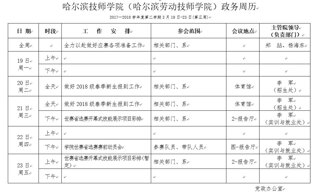 2017—2018学年度第二学期3月19日-23日(第三周)