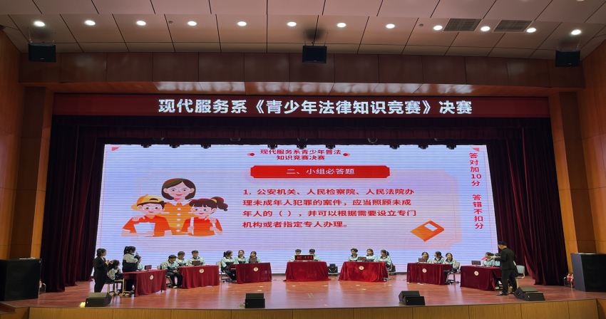 为深入贯彻落实法治教育要求,切实增强学生法治观念与安全防范能力,现代服务系于10月29日在二号教学楼一楼报告厅组织开展"青少年法律知识竞赛"决赛。系部6支代表队参加比赛,充分展现了扎实的法治知识水平。 本次竞赛围绕学生成长需求,重点设置《中华人民共和国宪法》《中华人民共和国民法典》《中华人民共和国未成年人保护法》等法律法规相关内容,针对校园欺凌、网络诈骗等学生日常生活场景设置典型试题。竞赛设置个人必答题...