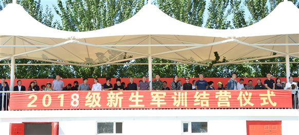 8月31日,我院2018级新生军训结营仪式在学院运动场隆重举行,学院党委委员、副院长张玉堂,学生工作处处长刘长林、各系主任、学管教师及全体新生班主任出席仪式。