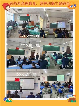 各系召开主题班会,聚焦“科学食养”,关注合理膳食、均衡营养,帮助同学们养成健康营养的饮食结构和习惯,学习《中国居民膳食指南》等多项内容,根据年龄特点推荐同学们每日摄入量。