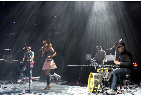 学院青年教师观看“中法文化之春”艺术节演出 发布日期:2013年06月25日 6月19日晚,2013“迷人的哈尔滨之夏—生活乐章”暨“中法文化之春”艺术节哈尔滨站法国摇滚专场演出在哈尔滨市少年宫举行,法国驻华大使白林,市委常委、宣传部长张丽欣,哈市文化和新闻出版局等领导的莅临,让我们一睹“法国范”和“中国风”的亲善和友好,法国佛沃太(Fowatile)摇滚乐队为到场观众奉献了一场精彩的电音摇滚。为推进学院文明创建工作的开展,我院积极组织教工体验不同文化的熏陶,提升文化品位,增强文明素质,副院长解平华及青年教工前往观看了演出。 佛沃太(Fowatile)摇滚乐队在演出中